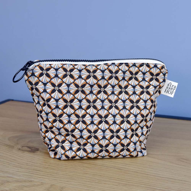 Handgefertiges Täschchen aus Baumwolle mit farbigem Reißverschluss. Strasserhof-Logo seitlich und innen. Unterschiedliche Farben bzw. Muster erhältlich, je nach Verfügbarkeit. Jedes Täschchen ist ein Unikat und kann sich von der Abbildung leicht unterscheiden, z.B. in der Farbe des Reißverschlusses oder von der Platzierung des Musters.